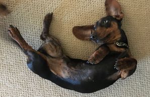 Rosie was in a very loving home for her entire life but she lost her human dad last year and her elderly mom could no longer care for her. As you can see she is overweight - her weight is currently just shy of 26 pounds and she will need to lose ten pounds. She will be in long term foster care while we get her back in shape. Having a dachshund that much overweight reduces their life span and puts so much additional pressure on their joints and back.