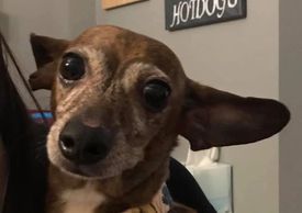 Persey, now known as Percy is a chiweenie whose owners' family situation changed and were unable to care for her.